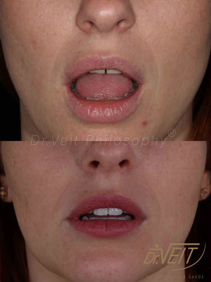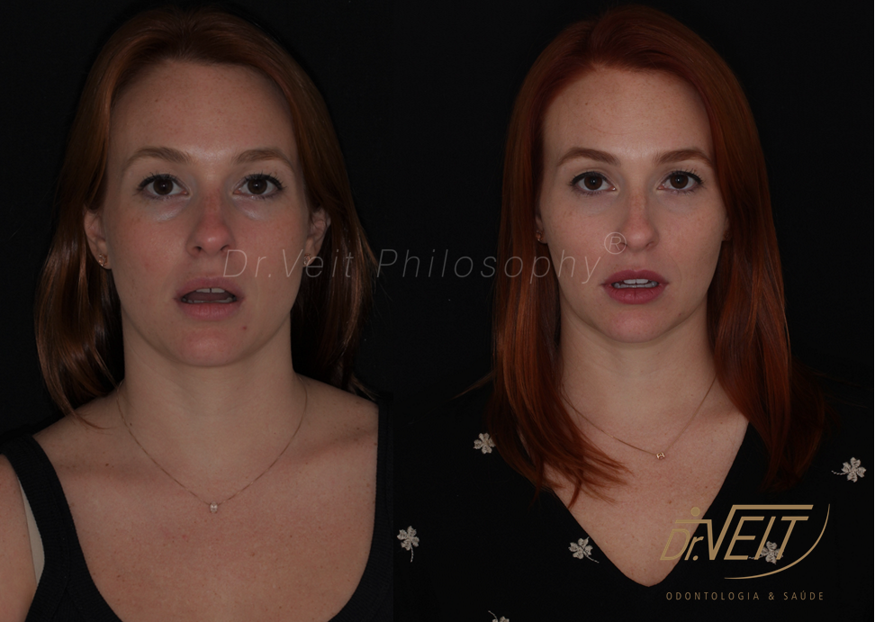 Paciente jovem com queixa estética e grande desgaste nos dentes da frente, com redução da dimensão vertical.