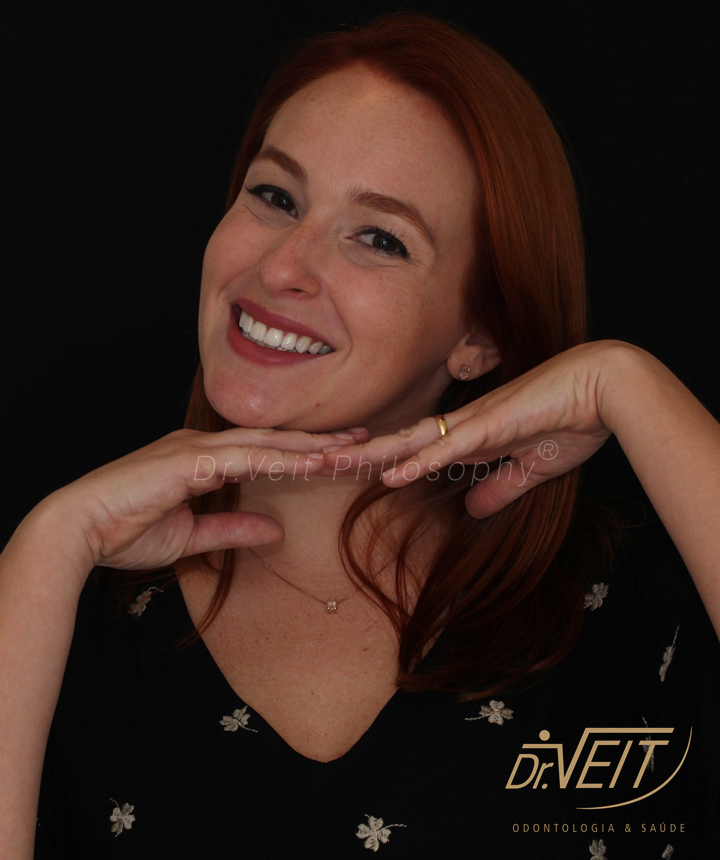 Realizou sua reabilitação oral, recuperando a beleza do seu sorriso e equilibrando sua mordida com lentes de contato dental.