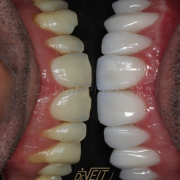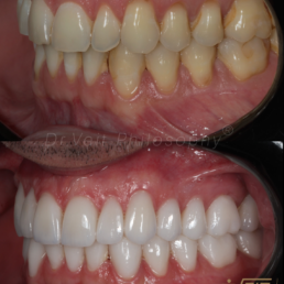 Recuperamos a estética dos dentes e equilibramos a função com lentes de contato dental associada à plástica gengival. Resultado alcançado de forma rápida devido a agilidade do nosso laboratório.