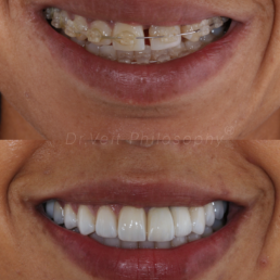 Reabilitação Oral Transdisciplinar, logrando longevidade, estética, naturalidade. Equilíbrio funcional e estético recuperado com lentes de contato dentais, este tratamento foi realizado de forma transdisciplinar, envolvendo todas as especialidades, recuperando a saúde dos dentes, dos ossos e gengiva, além do equilíbrio da mordida.