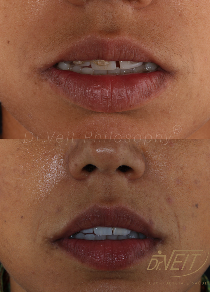 Reabilitação Oral Transdisciplinar, logrando longevidade, estética, naturalidade. Equilíbrio funcional e estético recuperado com lentes de contato dentais, este tratamento foi realizado de forma transdisciplinar, envolvendo todas as especialidades, recuperando a saúde dos dentes, dos ossos e gengiva, além do equilíbrio da mordida.
