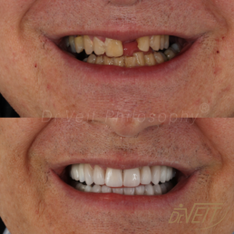 Reabilitação Oral Transdisciplinar, logrando longevidade, estética, naturalidade. Equilíbrio funcional e estético recuperado com lentes de contato dentais, este tratamento foi realizado de forma transdisciplinar, envolvendo todas as especialidades, recuperando a saúde dos dentes, dos ossos e gengiva, além do equilíbrio da mordida.