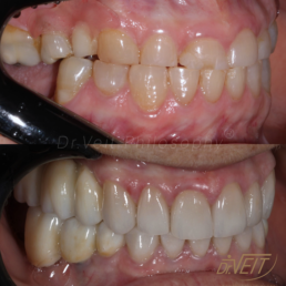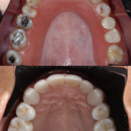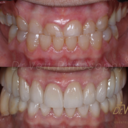 Reabilitação Oral Transdisciplinar, logrando longevidade, estética, naturalidade. Equilíbrio funcional e estético recuperado com lentes de contato dentais, este tratamento foi realizado de forma transdisciplinar, envolvendo todas as especialidades, recuperando a saúde dos dentes, dos ossos e gengiva, além do equilíbrio da mordida.