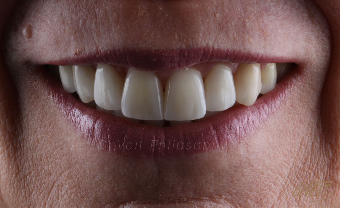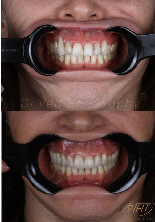 Reabilitação Oral Transdisciplinar, logrando longevidade, estética, naturalidade. Equilíbrio funcional e estético recuperado com lentes de contato dentais, este tratamento foi realizado de forma transdisciplinar, envolvendo todas as especialidades, recuperando a saúde dos dentes, dos ossos e gengiva, além do equilíbrio da mordida.