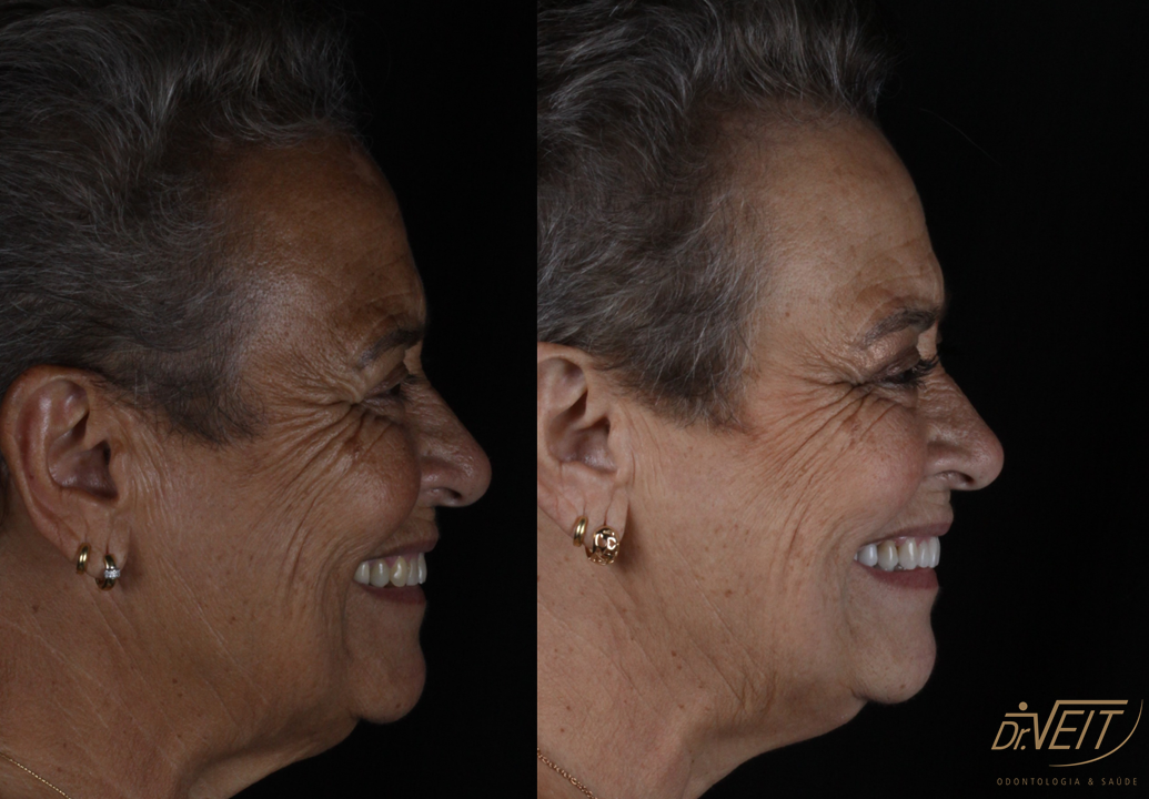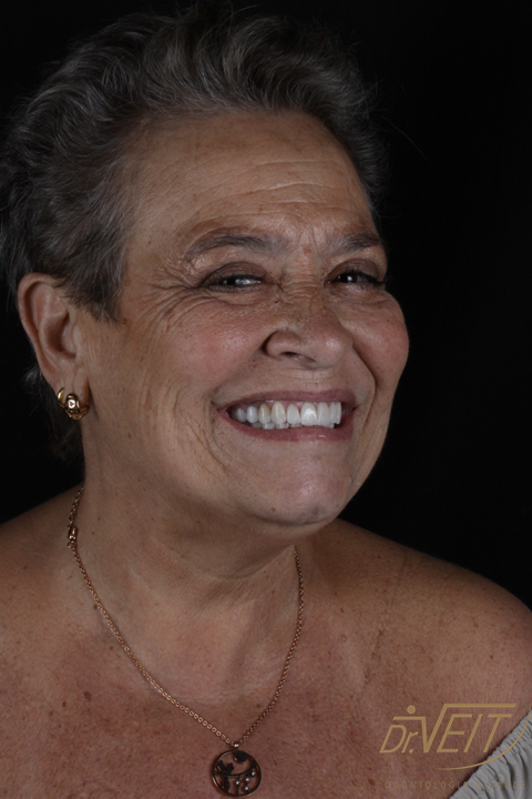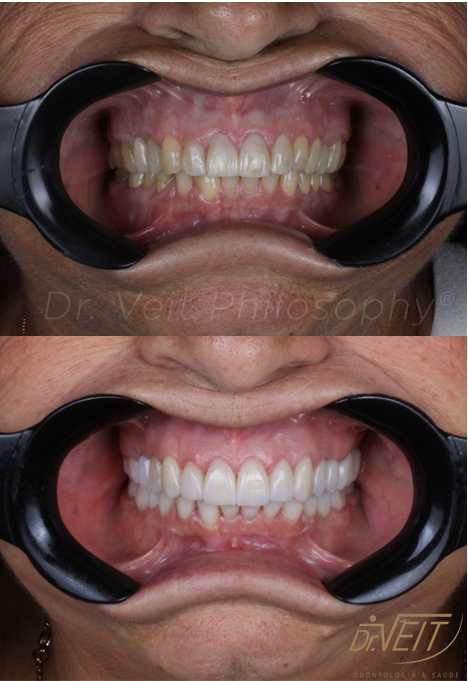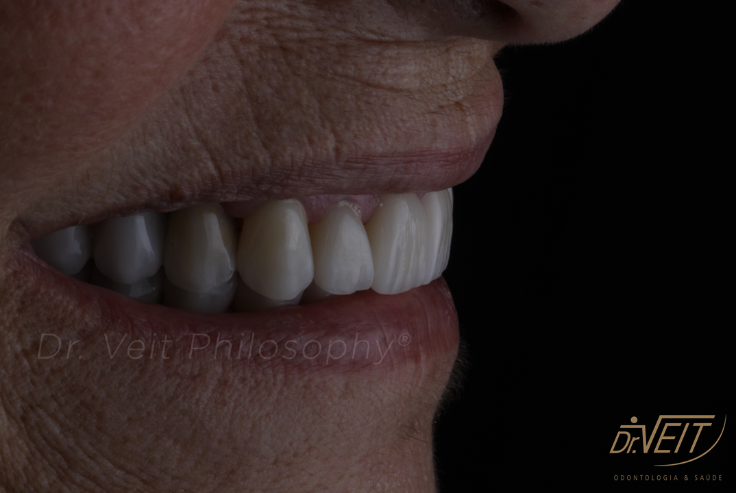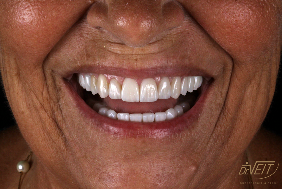 Reabilitação Oral Transdisciplinar, logrando longevidade, estética, naturalidade. Equilíbrio funcional e estético recuperado com lentes de contato dentais, este tratamento foi realizado de forma transdisciplinar, envolvendo todas as especialidades, recuperando a saúde dos dentes, dos ossos e gengiva, além do equilíbrio da mordida.