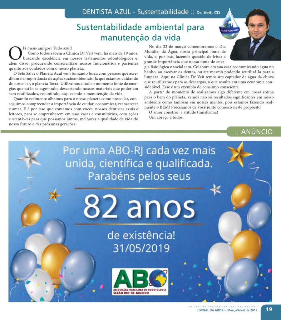 Para a família Dr. Veit a sustentabilidade é assunto sério. Confira a matéria da ABO-RJ onde o Dr. Veit sustentabilidade ambiental para a manutenção da vida.