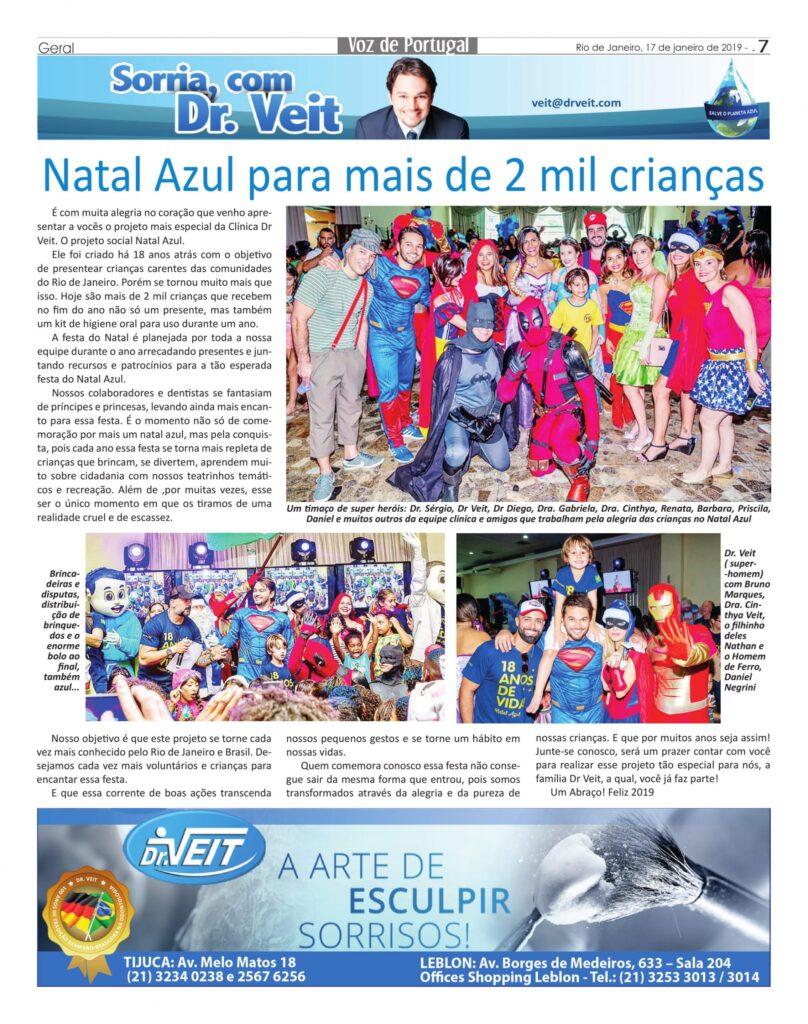 #Repost … Agenda Carioca #Cariocasquenosorgulham: desde que abriu os trabalhos no consultório, o Dr. Veit sempre buscou um jeito de ajudar a sociedade. Entre diversos projetos – como a fabricação da primeira escova dental biodegradável do Brasil – o dentista criou, há 18 anos, a festa Natal Azul, um projeto social em prol de crianças […]