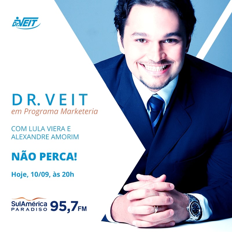 O Dr. Veit foi convidado a participar do programa Marketeria, da Rádio SulAmérica Paradiso. O programa, comandado por Lula Viera e Alexandre Amorim, traz um olhar e perspectiva diferenciados sobre o curioso e surpreendente mundo da gestão, empreendimentos e filosofias de sucesso no Brasil e no mundo. Não deixe de ouvir um pouco sobre a trajetória do grupo Dr. Veit e seus diferenciais, a estratégia por trás da expertise e personalização das consultas, os prêmios recebidos, sua influência na área socioambiental e a clínica conceito, Dr. Veit Leblon. Sua entrevista vai ao ar hoje, dia 10/09, às 20h, na FM 95,7.