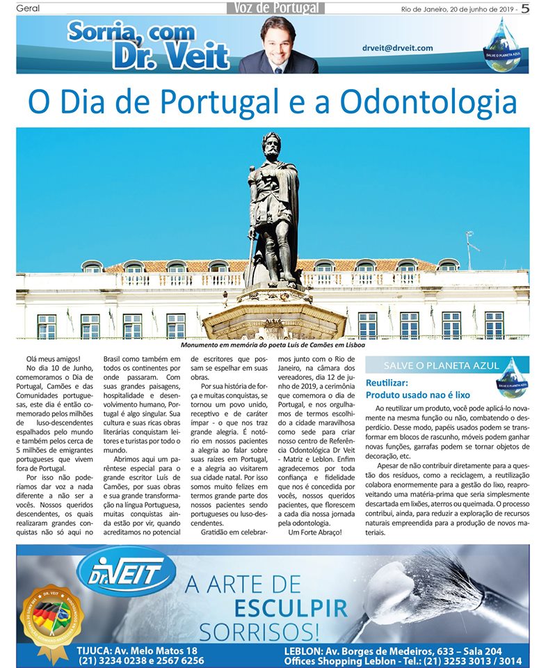 Confira a matéria da Voz de Portugal onde o Dr. Veit faz uma relação entre o Dia de Portugal e Odontologia.